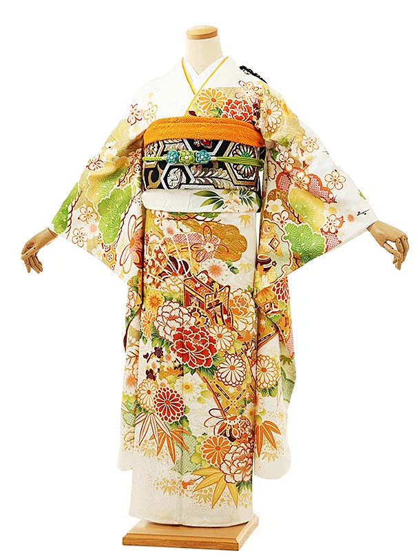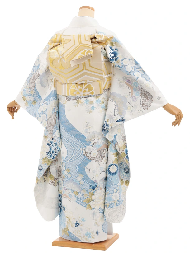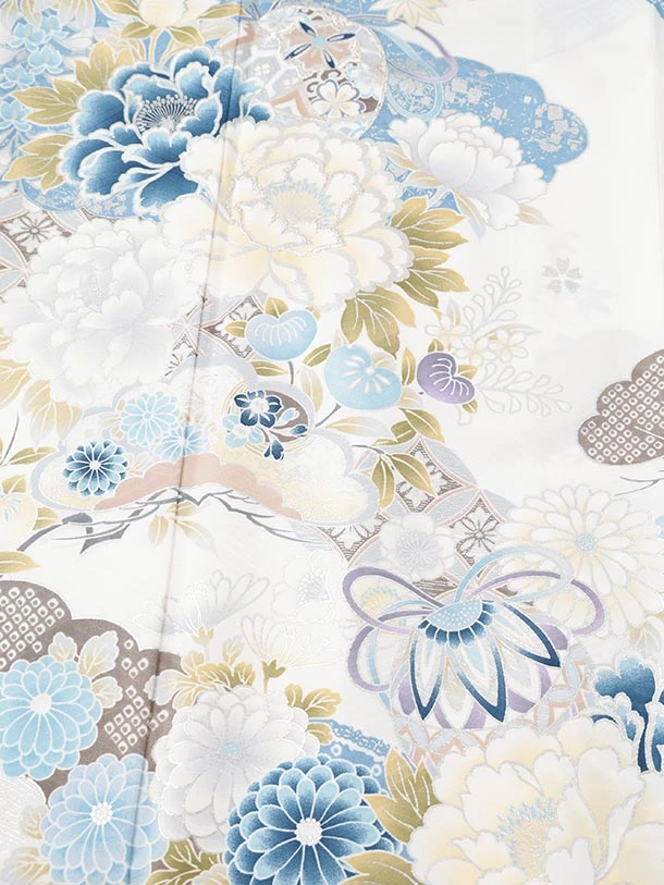 振袖レンタル1566 白地 まり牡丹四季花