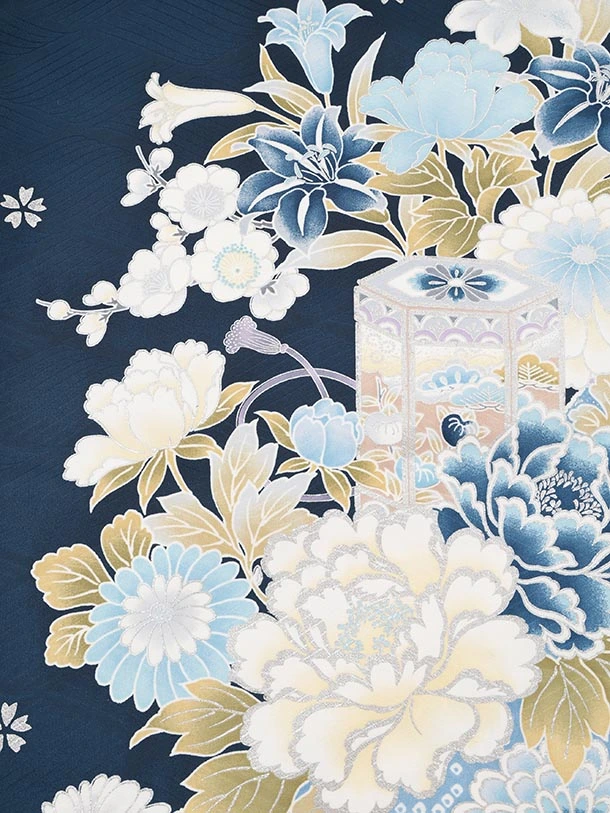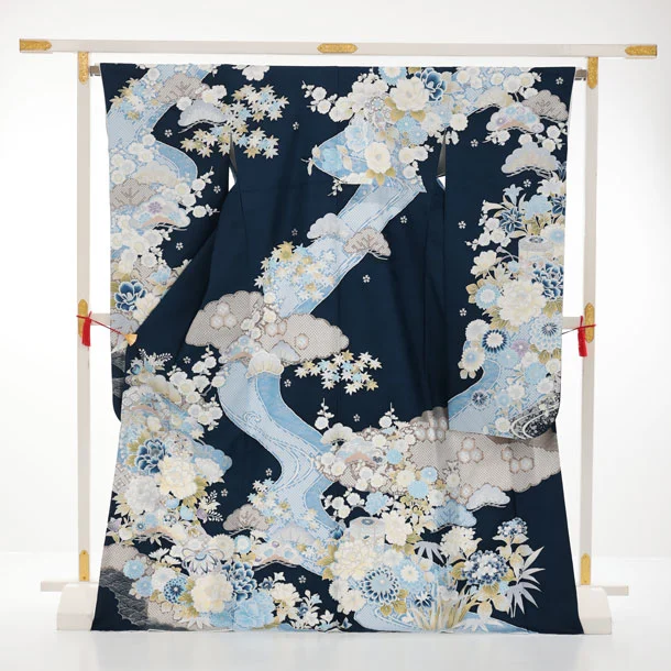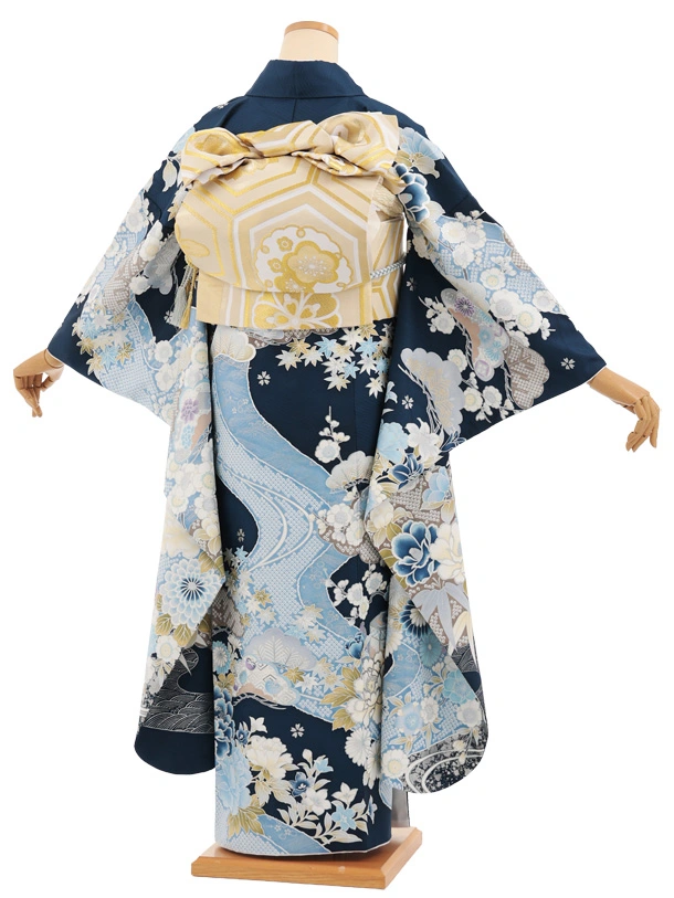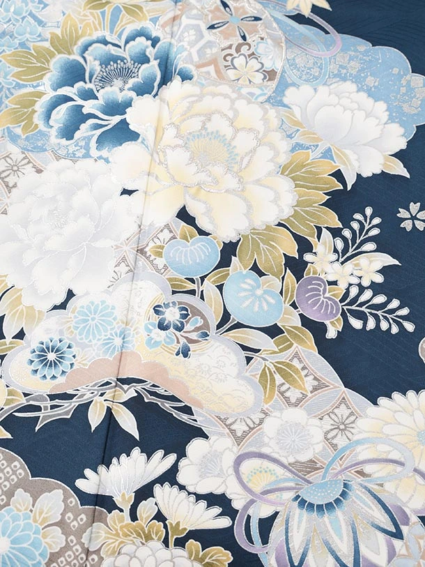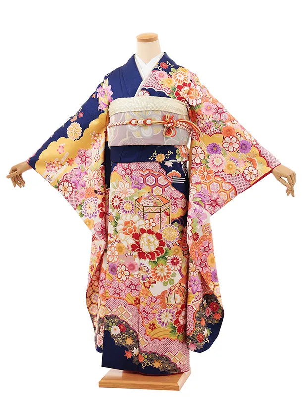 振袖レンタル1567 紺地 まり牡丹四季花