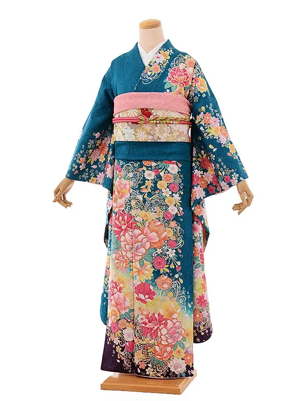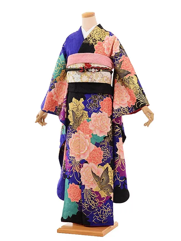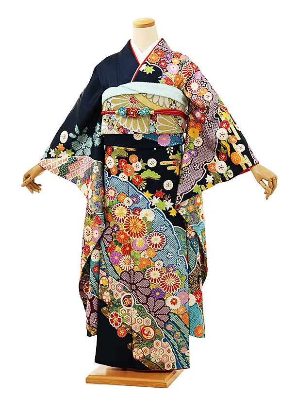 振袖レンタル1569 紺地 マリ 花