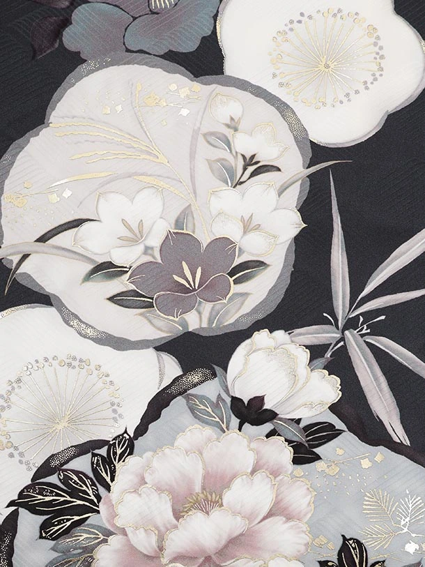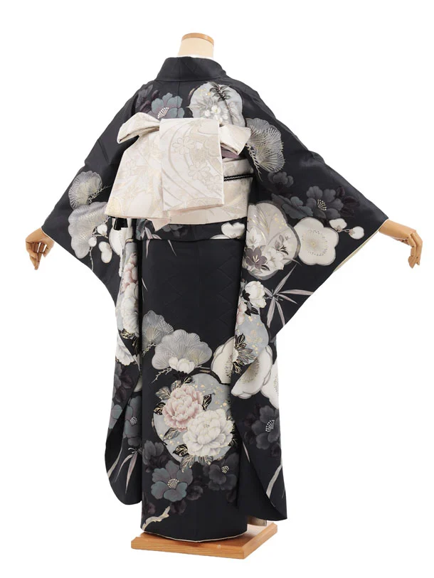 振袖レンタル1585 グレイッシュパープル 松竹梅にぼたん