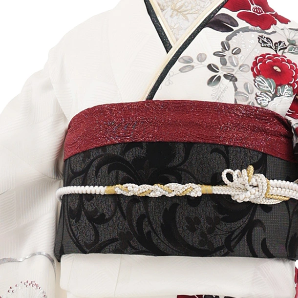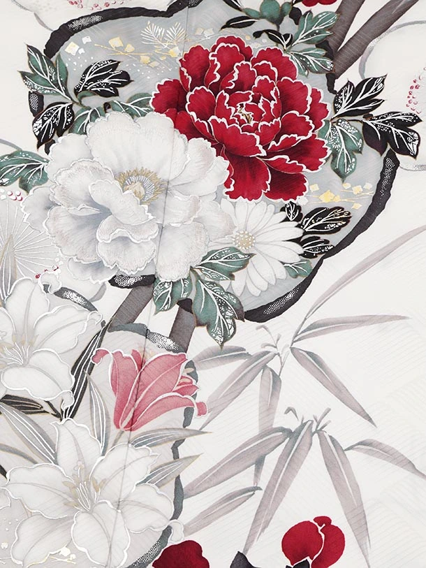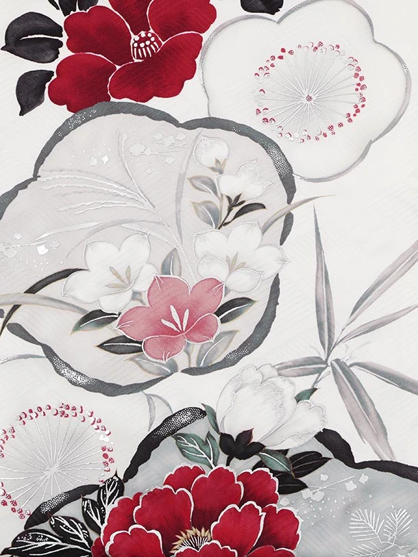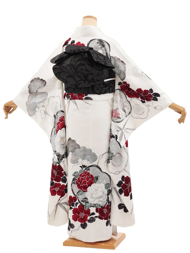 振袖レンタル1590 白地 椿 ぼたん