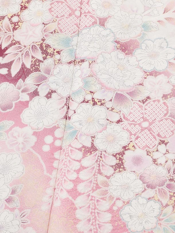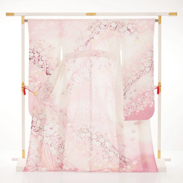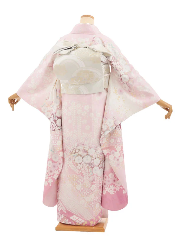 振袖レンタル1599 ピンク白ぼかしラメ 辻が花調