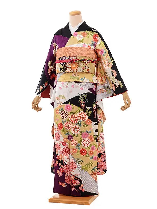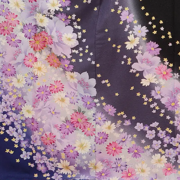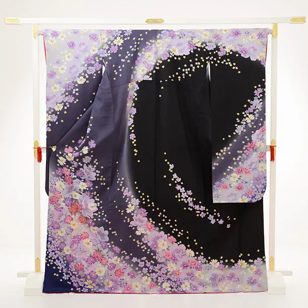 振袖レンタルE064グレー黒ぼかしマーガレット