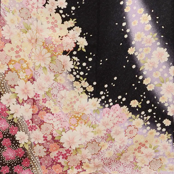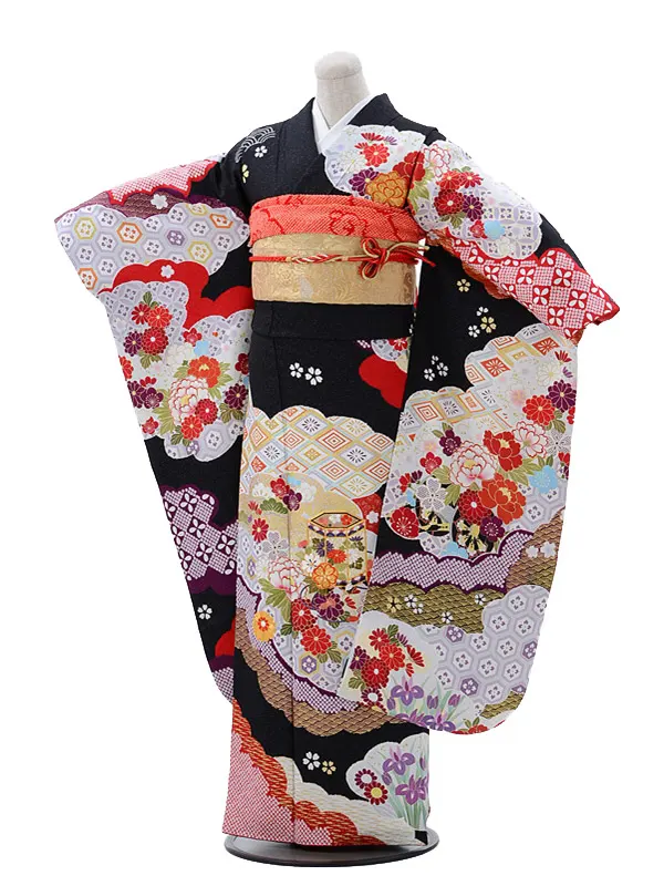 振袖レンタルE066黒地ラメ手まり