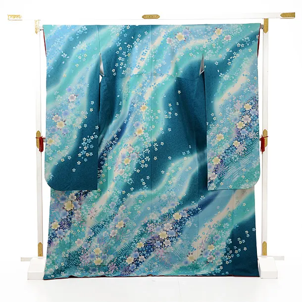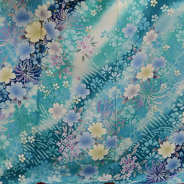 振袖レンタルE128ブルーグリーン桜と菊