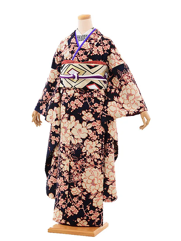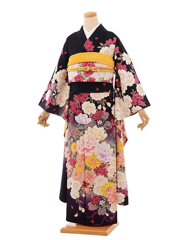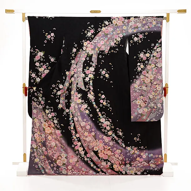 振袖レンタル151黒地紫ぼかし熨斗め花
