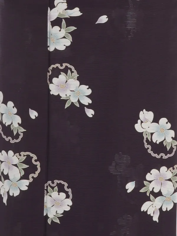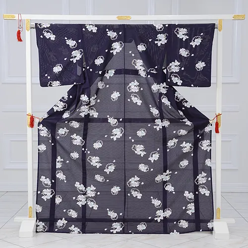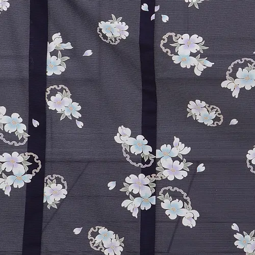 夏小紋 絽 t0042濃紺に雪輪ハナミズキ(化繊)