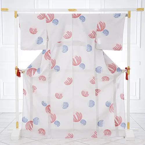 夏小紋 絽 t0045白地に赤まり(化繊)
