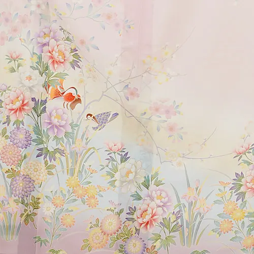 夏訪問着 単衣 t0088 JAPAN STYLE ピンク紫ぼかし花