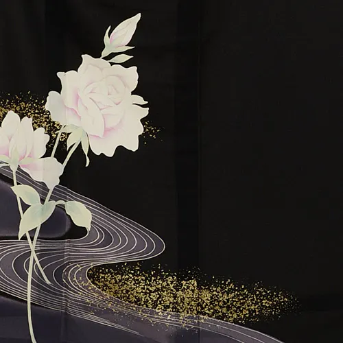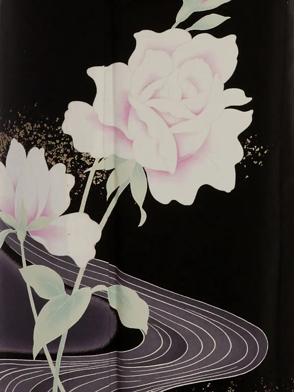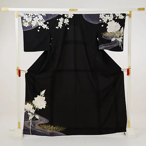 夏訪問着 単衣 t0090 JAPAN STYLE 黒地バラと桜