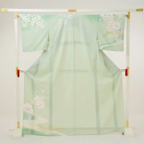 夏訪問着 単衣 t0092 JAPAN STYLE 薄グリーン地バラ