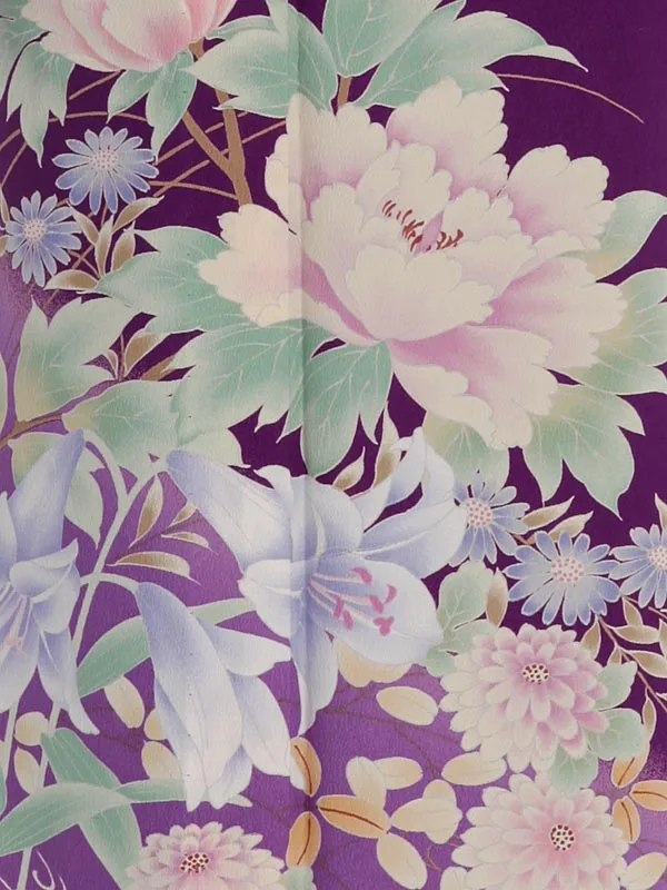夏訪問着 単衣 t0094 JAPAN STYLE 紫地花