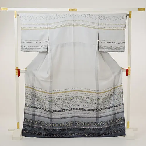 夏訪問着 単衣 t0504 グレー更紗(正絹)