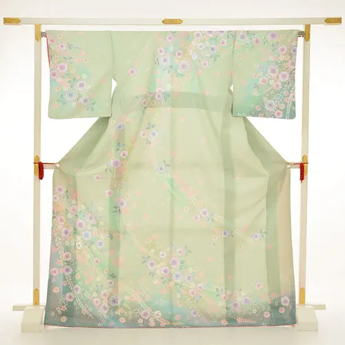 訪問着レンタル0542 H・L 黄緑色 辻が花調