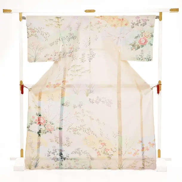 夏訪問着 絽 t597 クリーム色 四季花