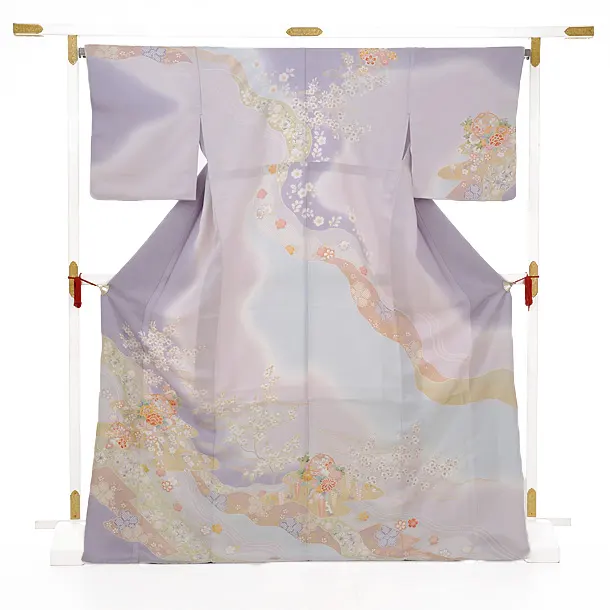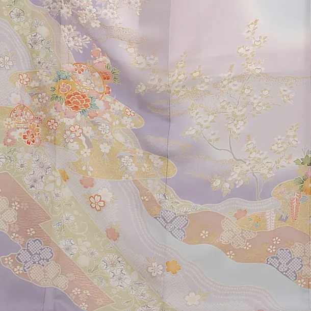 訪問着レンタル0611 薄紫地ぼかしまり花