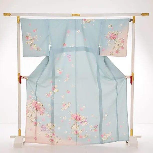 訪問着レンタルt644 乙葉 水色 扇ぼたん