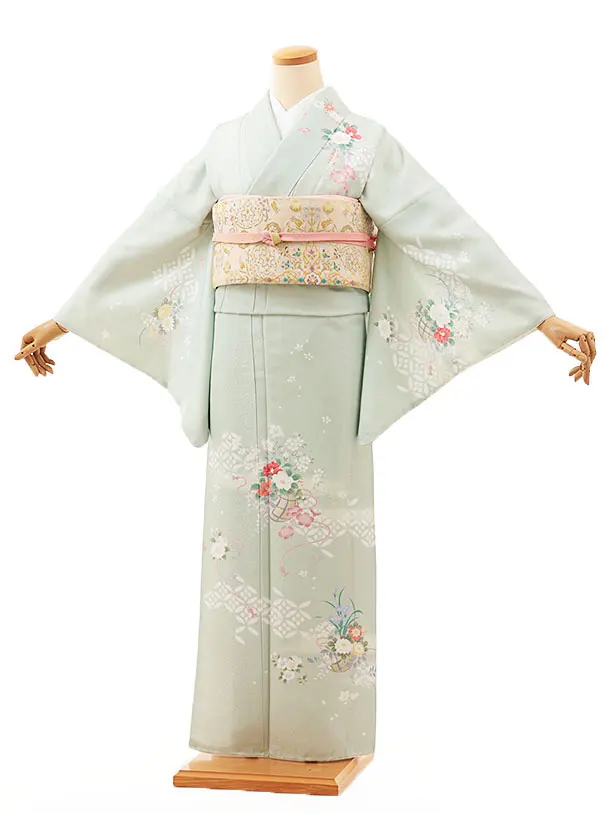 訪問着レンタルt645 パステルグリーン ブーケ