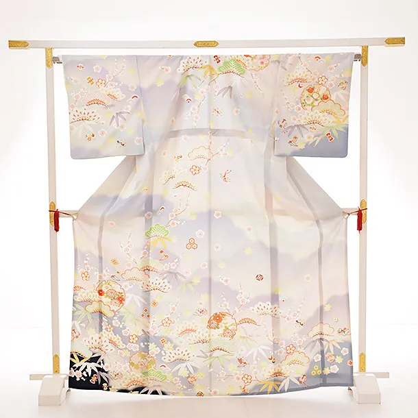 訪問着レンタルt656 JAPANSTYLE グレー地 松竹梅