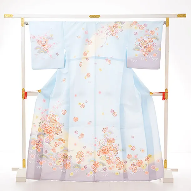 訪問着レンタル tc664 水色地 ぼたん 貝桶