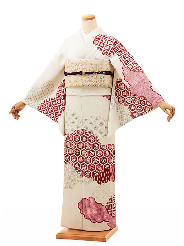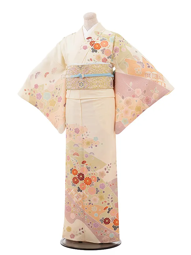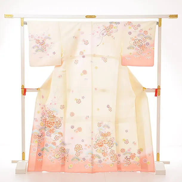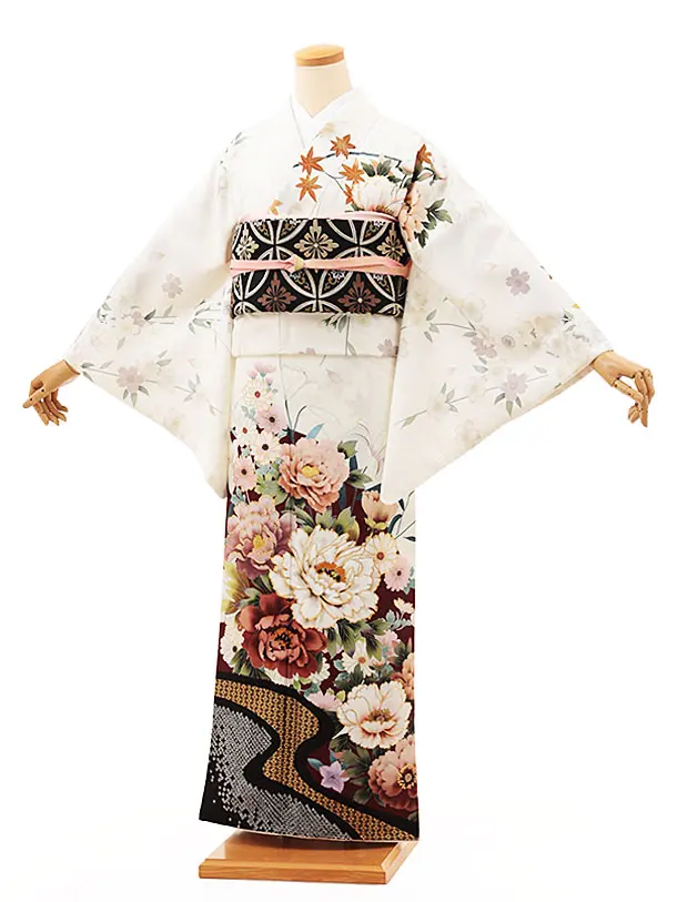 訪問着レンタル tc665 クリーム色地 ぼたん 貝桶