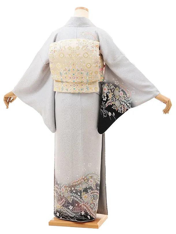 訪問着レンタル t692 うすグレー地ラメ 辻が花調