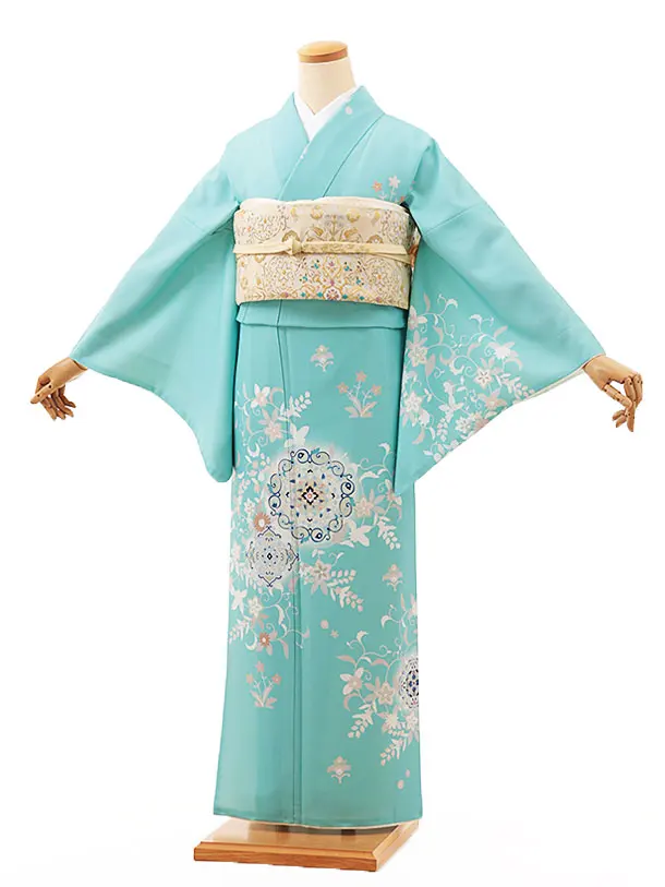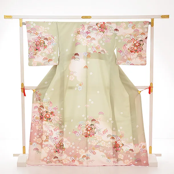 訪問着レンタル tc717 H・L グリーン地 扇に薬玉