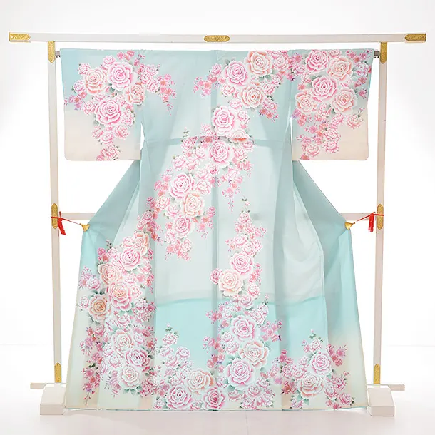 訪問着レンタル tc725 パステルグリーン地 バラ
