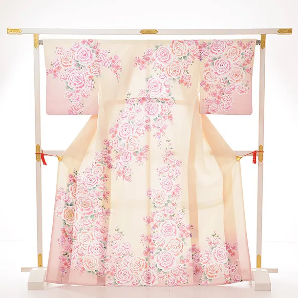訪問着レンタル tc726 クリーム地 バラ