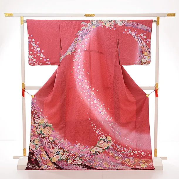 訪問着レンタル t735 ピンク地 のしめ花丸