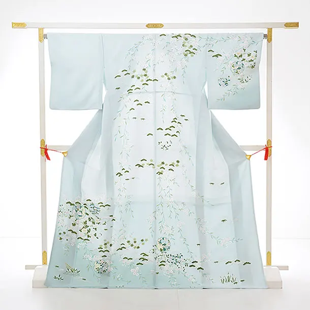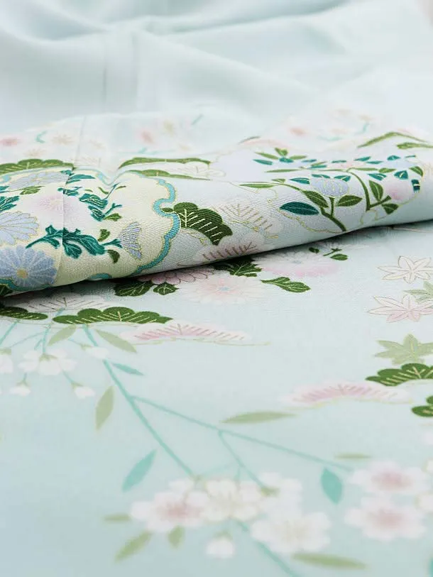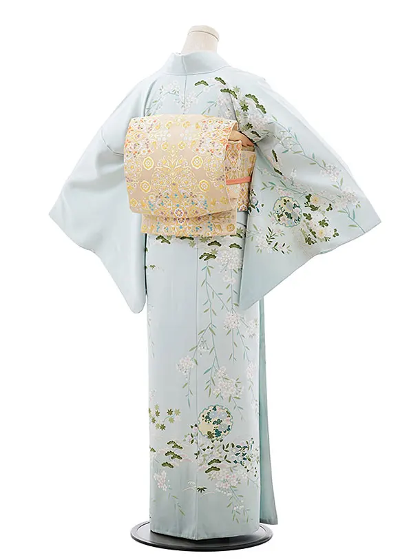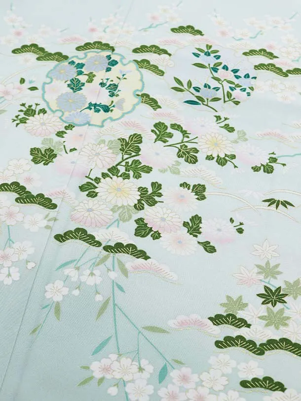 訪問着レンタル752 うすグリーン地 菊 松 桜