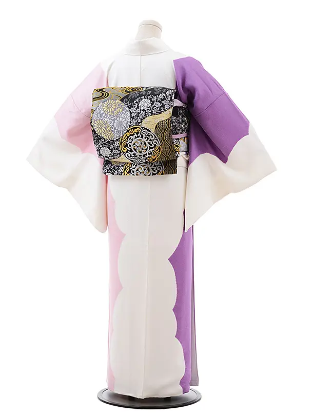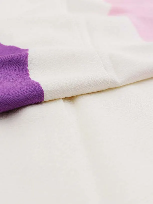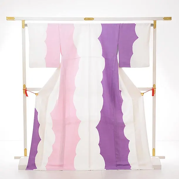 訪問着レンタル764 白地にピンク x 紫 桶絞り