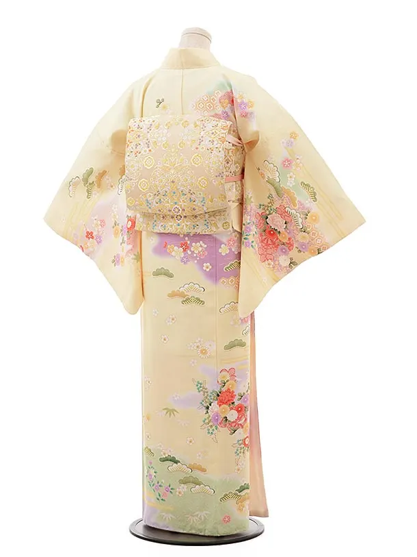 訪問着レンタルtQ780 うすきいろ地 霞に花車