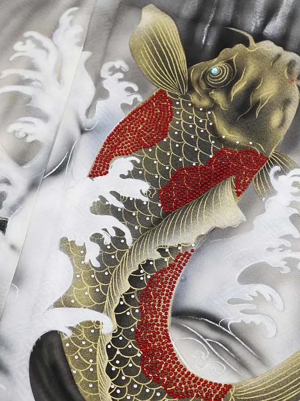 訪問着レンタル810 赤地 ラインストーン 鯉と龍