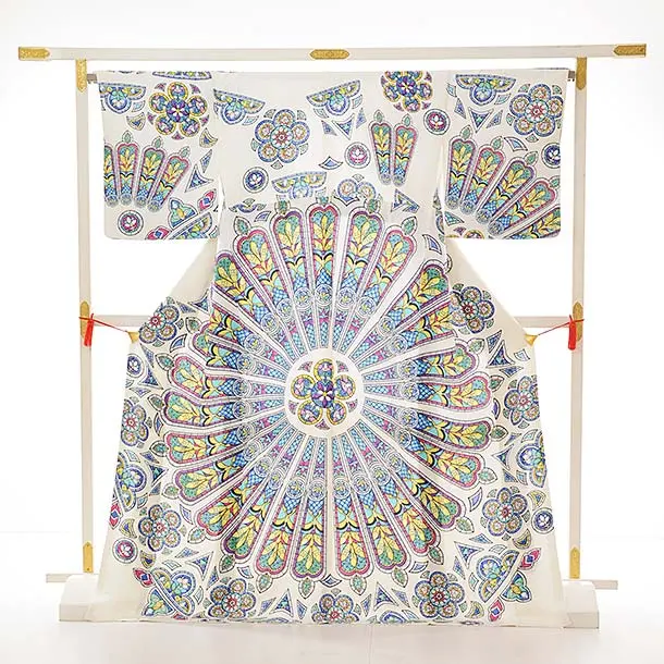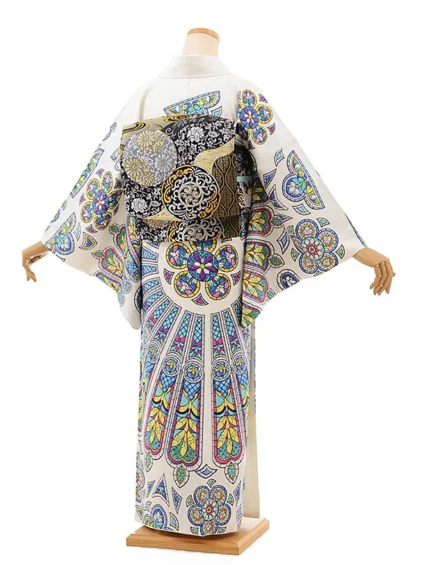 訪問着レンタル813 白地 ラメ ステンドグラス