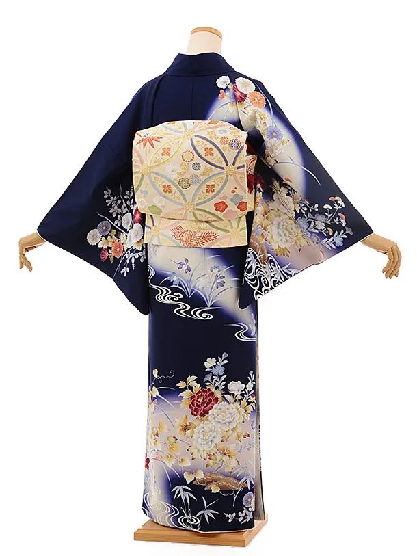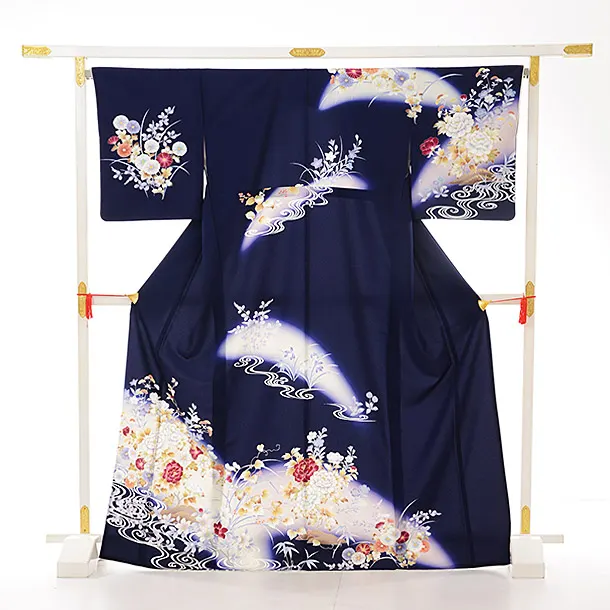 訪問着レンタル815 ジャパンスタイル 紺地 ぼたん