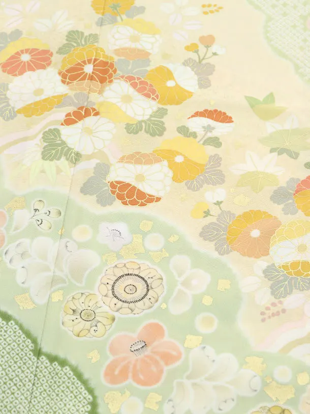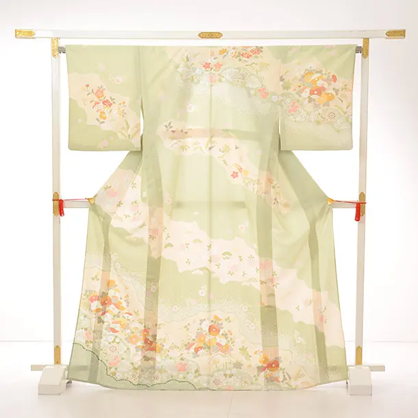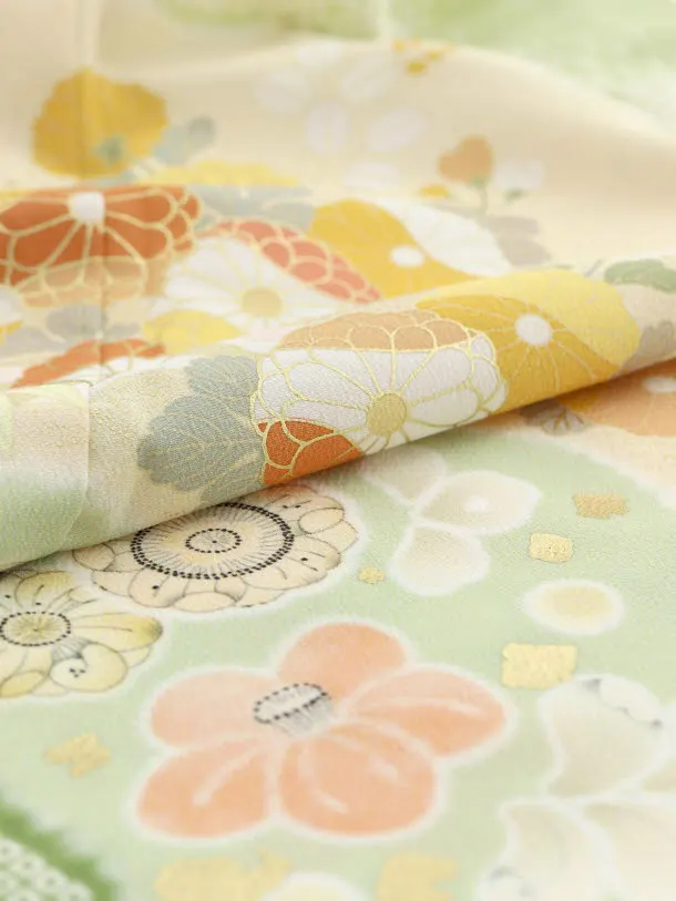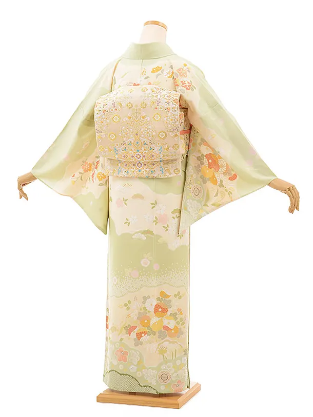 夏訪問着 単衣 822 ジャパンスタイル うすグリーン 雲取り菊