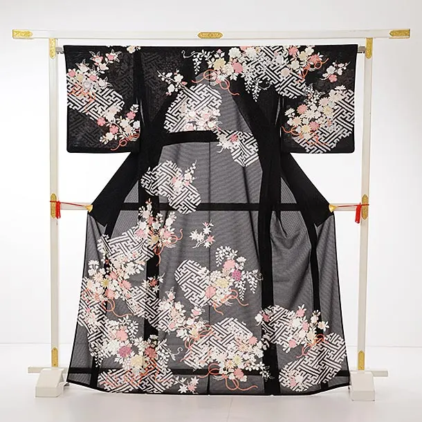 夏訪問着レンタル 絽 828 ジャパンスタイル 絽 黒 四季花