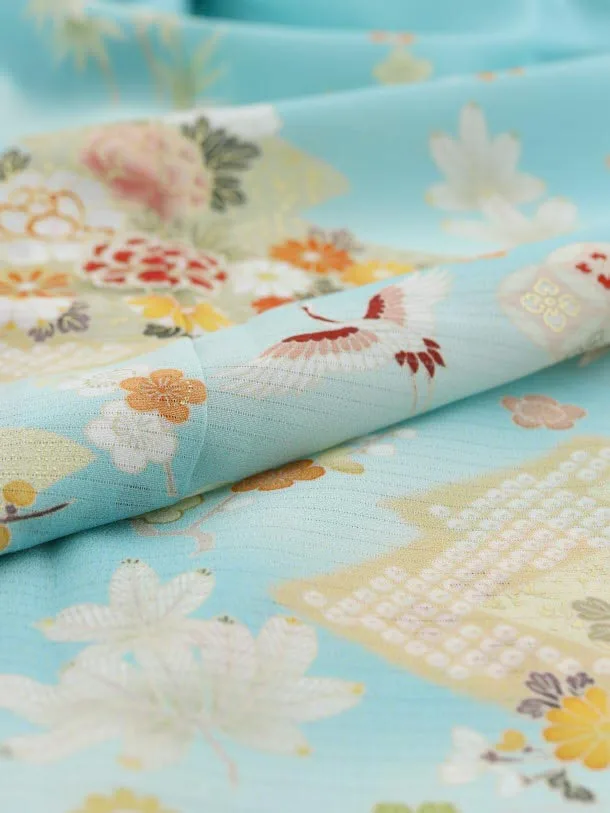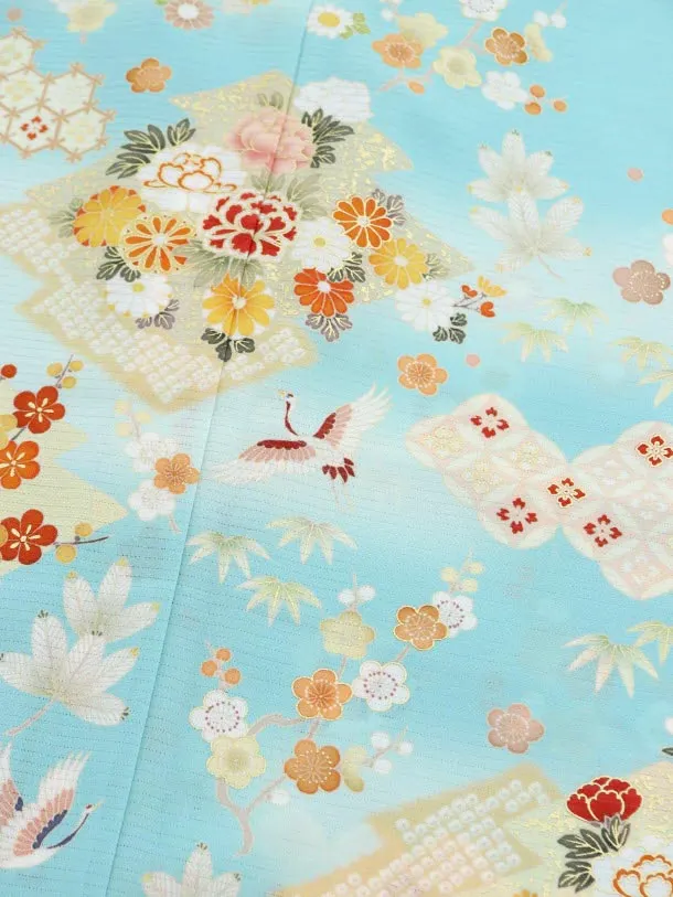 夏訪問着レンタル 絽 832 ジャパンスタイル ターコイズ 花鶴