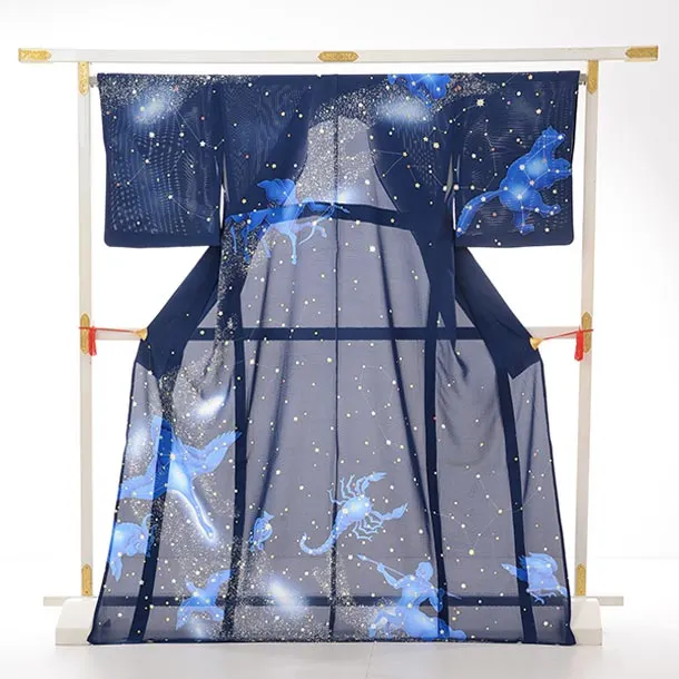 夏訪問着レンタル 絽 833 紺地 天の川 星座