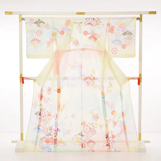 夏訪問着レンタル 絽 841 薄黄色 松竹梅