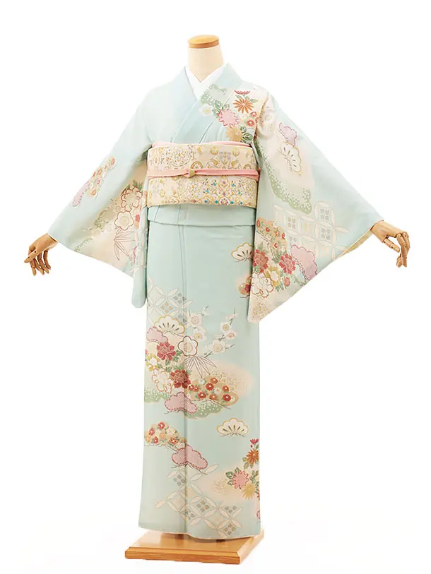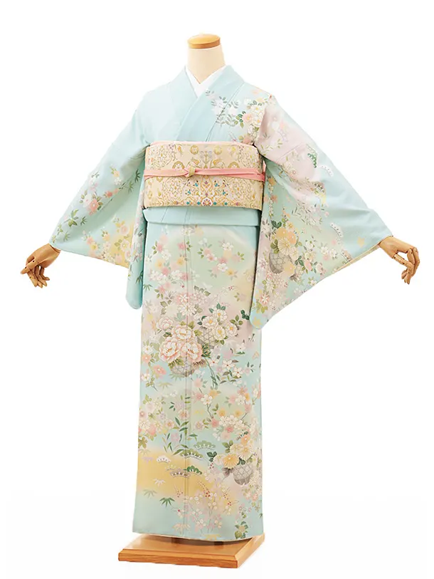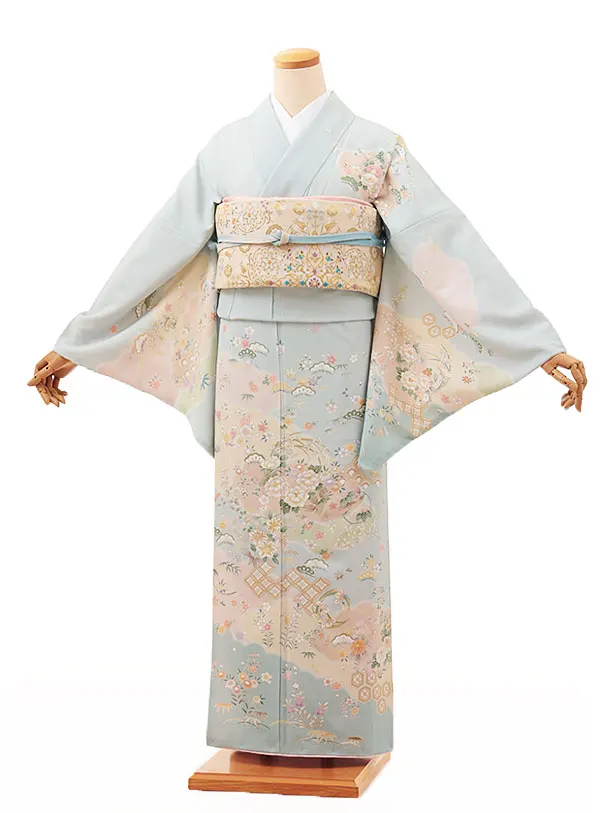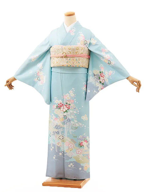 訪問着レンタルtc863 水色地 ぼかし 松竹梅