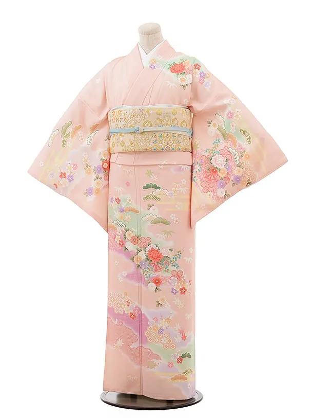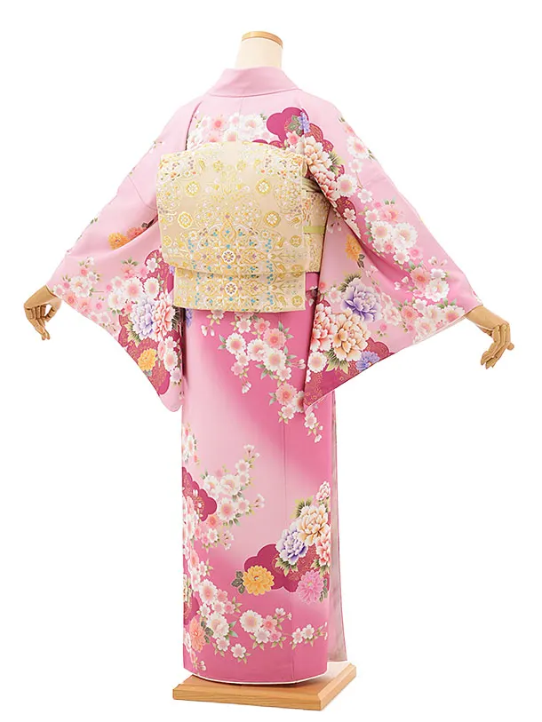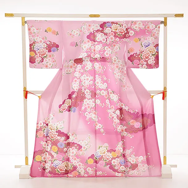 訪問着レンタルtc864 ピンクぼかし 雲取 ぼたん