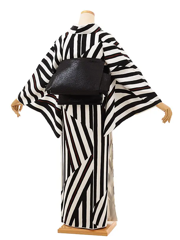 訪問着レンタルt868 白黒赤 変わりストライプ