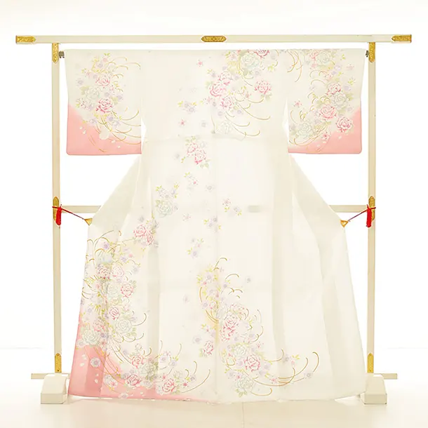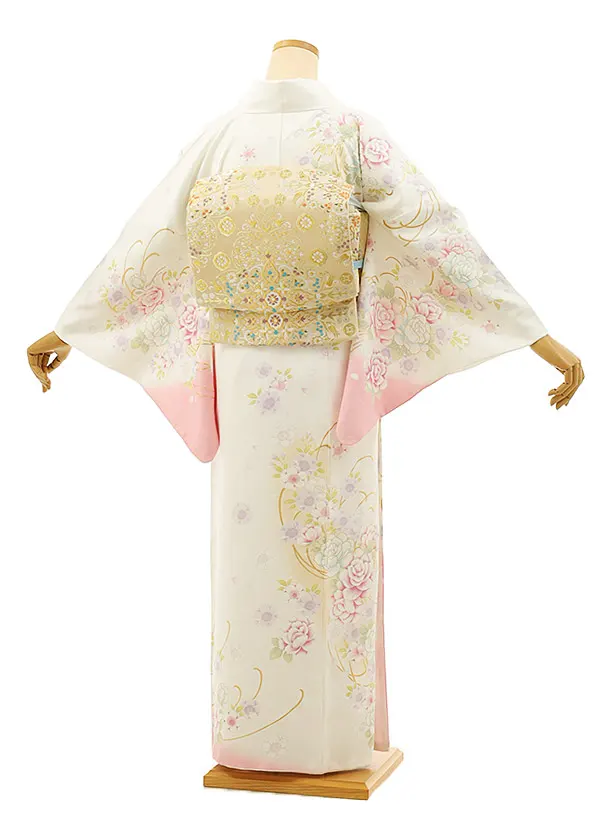 訪問着tc902 白地裾ピンクバラ
