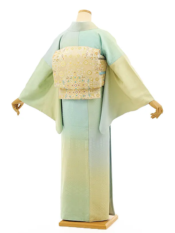 訪問着t936 三十三襲ね 吉祥百寿文 グリーンぼかし