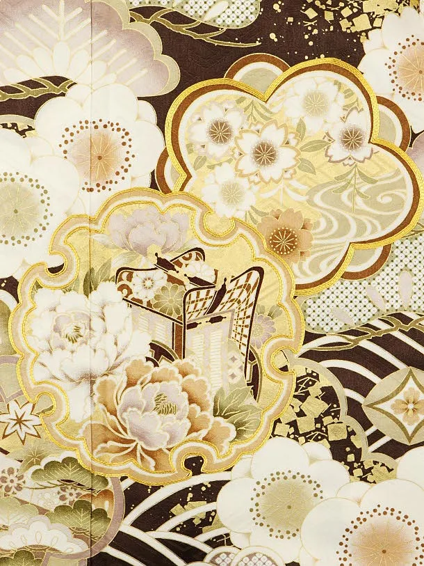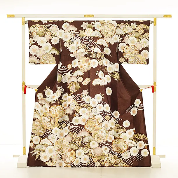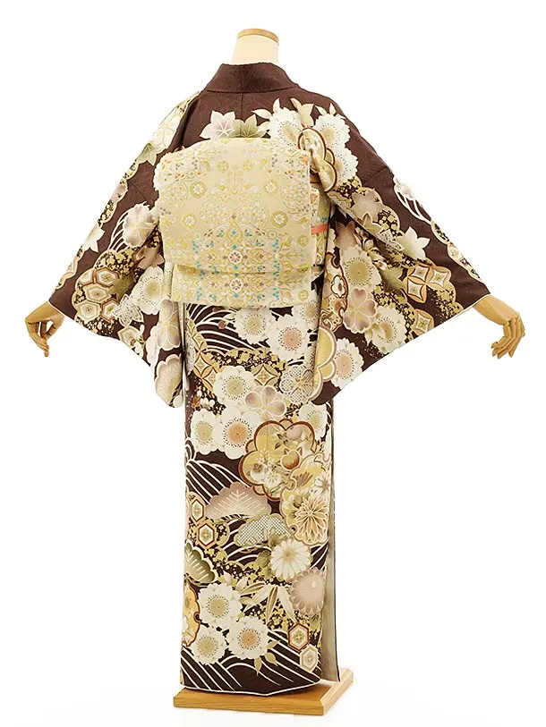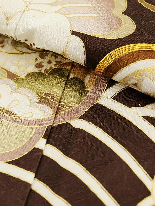 訪問着t945 茶色地 雪輪に御所車 梅桜
