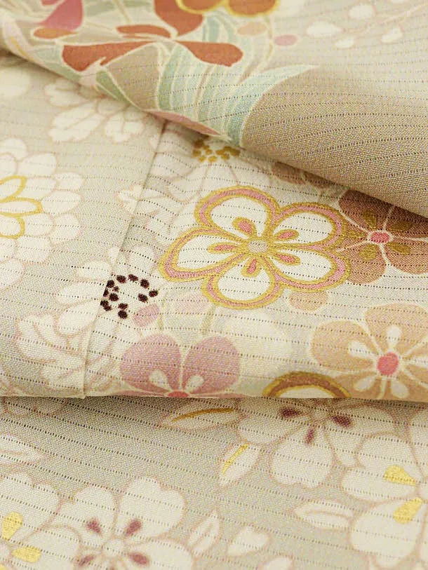 夏訪問着 絽 t970 JAPAN STYLE 絽 グレージュ 四季花