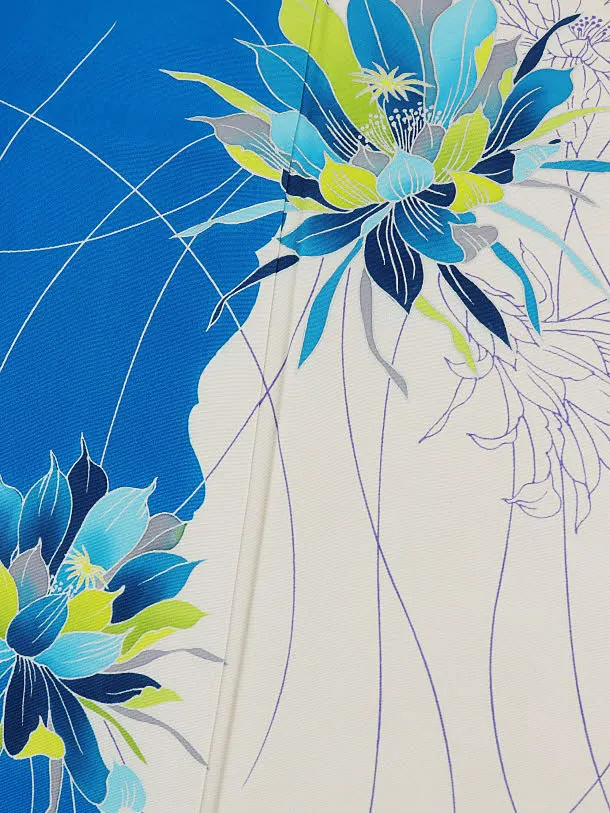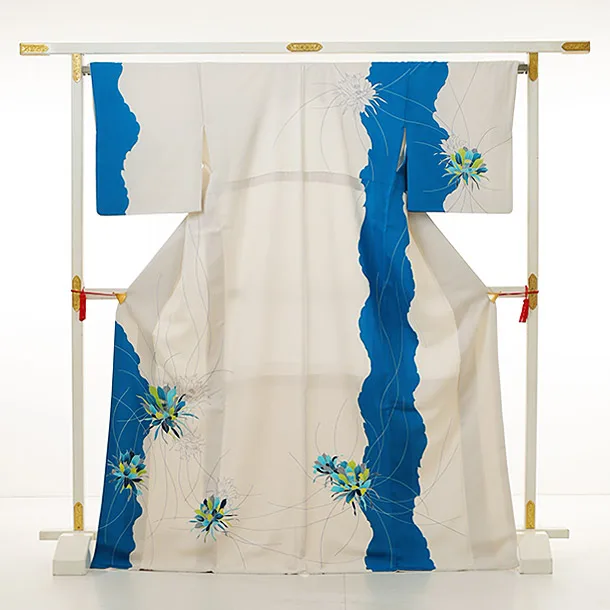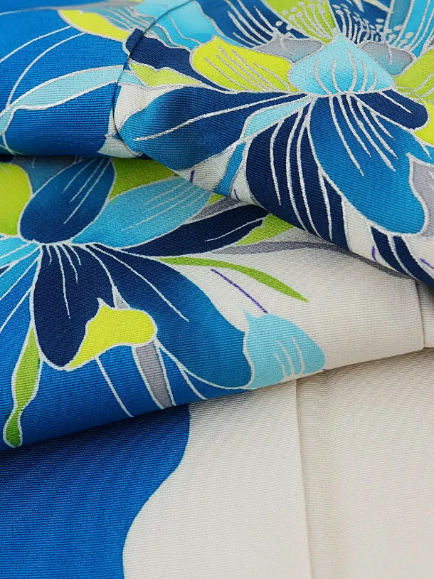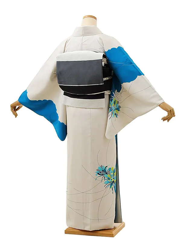 訪問着t971 假屋崎省吾 淡グレージュブルー月下美人