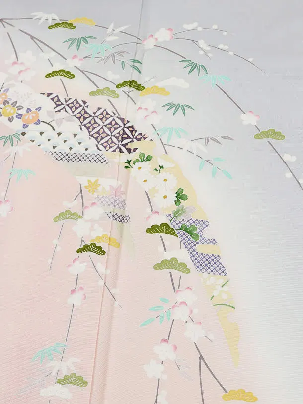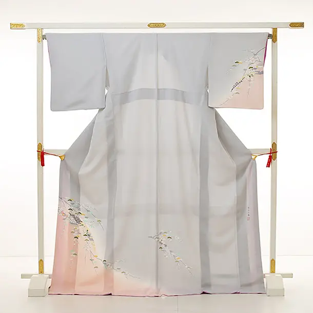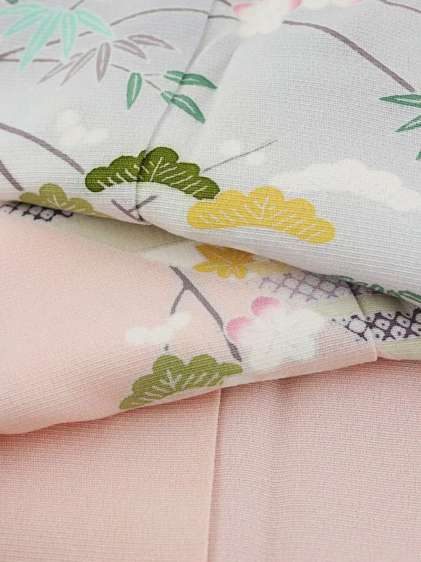 訪問着t990 淡グレー地 雪芝文に松竹梅